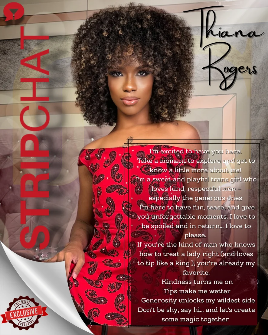 I am a dance-loving girl, I am passionate about dance and contemporary dance. I love practicing voguing. Something I also enjoy is reading and movies. I am fascinated by sharing mutual interests with other people. In my privacy I enjoy everything without limits, add me and we will always be in contact so that we can enjoy a unique and delicious moment. with love Thiana